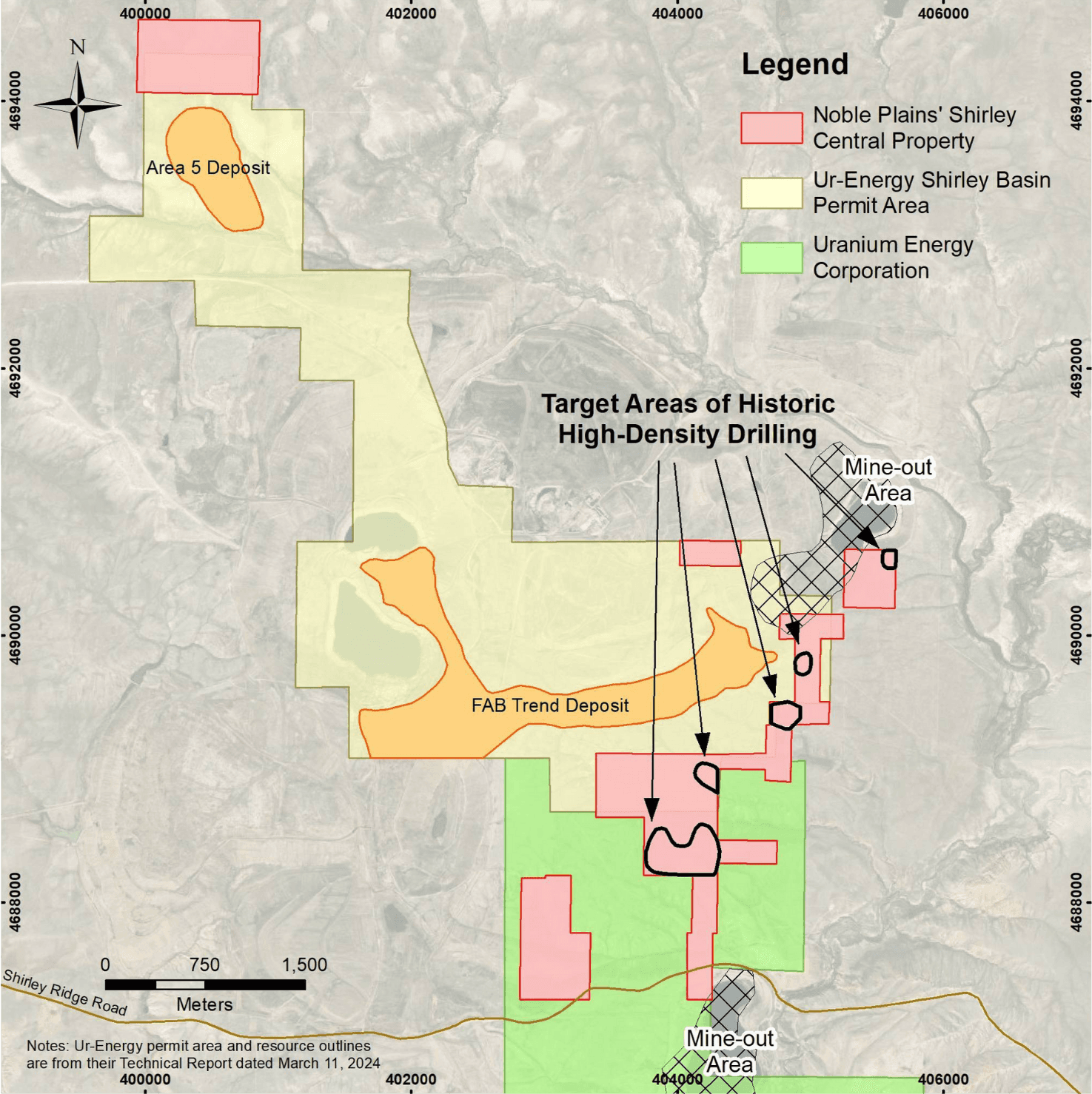 Shirley East and Shirley Central (Shirley Basin): 2,405 acres total — Shirley East 1,740 acres / 87 claims; Shirley Central 665 acres / 30 claims — in a proven ISR district adjacent to Ur-Energy/UEC with infrastructure and historical data.
